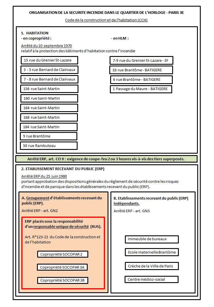 Le périmètre du fameux « GROUPEMENT ERP DU QUARTIER DE L’HORLOGE » regroupe en fait l'ensemble des lots des 3 copropriétés SOCOPARS en « un seul établissement recevant du public » au titre de l'art. GN2 de l'arrêté ERP du 25 janvier 1980.